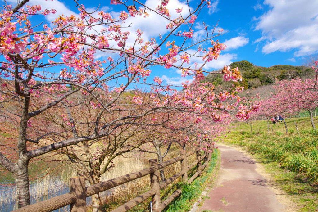 2月上旬ごろ開花を迎える「頼朝桜」を皮切りに、